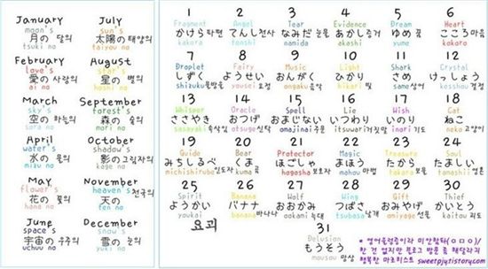 [아시아경제 박충훈 기자]최근 온라인 누리꾼들 사이에 외국의 이름짓기 요령이 전파되며 화제를 낳고 있다. 인디언식 이름짓기에 이어 중세 유럽이나 일본의 이름짓는 법까지 등장했다. 주로 생년월일에 따라 주어진 명칭을 조합하면 여러가지 이름이 탄생하는 식이다.온라인 커뮤니티 뽐뿌의 유머게시판에 아이디 '수고했어 오늘도'가 올린 '이름짓기 - 일본편' 게시물을 참조하자면 일본에선 생월에 따라 '달', '별', '눈' 등 자연에 관련된 단어와 '~의'라는 관형격 조사가 붙는다.생일에 따라선 '시즈쿠(물방울)', '히카리(빛)' 등의 단어가 정해진다. 생일이 12월 7일이라면 '유키노 시즈쿠(눈의 물방울)'이란 낭만적인 이름을 갖게 된다.'수고했어 오늘도'가 올린 게시물에는 중세시대 이름짓기도 있다. 조합에 따라 '눈부시게 미남인 행운아'같은 멋진 이름도 탄생할 수 있다.[일본식 이름짓기]1월 : 츠키노 : 달의 2월 : 아이노 : 사랑의 3월 : 소라노 : 하늘의 4월 : 미즈노 : 물의 5월 : 하나노 : 꽃의 6월 : 우츄우노 : 우주의 7월 : 타이요오노 : 태양의 8월 : 호시노 : 별의 9월 : 오오모리노 : 숲의 10월 : 카게노 : 그림자의 11월 : 텐노 : 하늘의(천국의) 12월 : 유키노 : 눈의 1일 : 카케라 : 파편 2일 : 텐시 : 천사 3일 : 나미다 : 눈물 4일 : 아카시 : 증거 5일 : 유메 : 꿈 6일 : 코코로 : 마음 7일 : 시즈쿠 : 물방울 8일 : 요오세이 : 요정 9일 : 온가쿠 : 음악 10일 : 히카리 : 빛 11일 : 사메 : 상어12일 : 켓쇼오 : 결정 13일 : 사사야키 : 속삭임 14일 : 오츠게 : 신탁 15일 : 오마지나이 : 주문 16일 : 이츠와리 : 거짓말(사기꾼) 17일 : 이노리 : 기도 18일 : 네코 : 고양이 19일 : 미치시루베 : 이정표(안내자) 20일 : 쿠마 : 곰 21일 : 호고샤 : 보호자 22일 : 마호 : 마법 23일 : 타카 라 : 보물 24일 : 타마시이 : 영혼 25일 : 요오카이 : 요괴26일 : 바나나 : 바나나27일 : 오오카미 : 늑대 28일 : 츠바사 : 날개 29일 : 오미야게 : 선물 30일 : 카이토오 : 괴도 31일 : 모오소오 : 망상[중세시대식 이름짓기]◇남자나 남자같은 여자아이에게 지어주는 이름.1월 : Douglas (더글러스): 짙은 회색의2월 : Alber (앨버트): 대단히 뛰어난3월 : Andrew (앤드류): 남자다운, 용감한4월 : Arnold (아놀드): 명예를 중시하는5월 : Claude(클라우드): 순수한6월 : Enoch (에녹): 신에게 바쳐진7월 : Gilbert (길버트): 금보다 더 빛나는8월 : Harace (헤레이스): 눈부시게 미남인9월 : Leonard (레오나드): 사자같이 용맹한10월 : Philip (필립): 말을 좋아하는11월 : Samuel (사무엘): 신의 말을 알아듣는12월 : Patrick(패트릭): 기품있는1일 : Aaron (아론): 산에 사는 사람.2일 : Abraham (아브라함): 군중의 아버지.3일 : Duncan (던컨): 창격의 기사4일 : Alan, Allan (알렌): 사냥개5일 : Alfred (앨프레드, 알프레드-마찬가지) 평화 그 자체, 믿을만한 조언자6일 : Alexander(알렉산더): 조력자7일 : Antony (안토니): 전격의 거인8일 : Arthur (아더): 뛰어난 지도자 or 왕9일 : Benedict (베네딕트): 축복받은자10일 : Benjamin (벤자민): 행운아11일 : Cecil(세실): 장님이지만, 그의 눈은 마음을본다.12일 : Conrad (콘라드): 수다스런 조언자13일 : Daniel (다니엘): 신을 대신하는 재판관14일 : David (데이비드): 바람둥이15일 : Adam (아담): 땅의 자식16일 : Edgar (에드가): 행복을 만드는자17일 : Edwin (에드윈): 무서운 정복자18일 : Ferdianand (페르디난드): 이해가 빠른 사나이19일 : George (조지) : 농부20일 : Harold (해럴드): 승리자21일 : Jacob (야곱): 함정을 파는 자22일 : Lawrence (로렌스): 월계관을 쓴 뛰어난 전사23일 : Martin (마틴): 중세 기사의 수호성인24일 : Matthew (매튜): 신의 선물25일 : Oliver (올리버) : 여신이 선물해준 올리버나무 한그루26일 : Peter (피터): 넘어지지않는 바위27일 : Robert (로버트) : 붉은 수염의 남자28일 : Walter (얼터): 강력한 영주29일 : Oscar (오스카) : 행정관30일 : Michael(미카엘): 신과 닮은 자상한 남자.31일 : Nicholas (니콜라스): 새벽의 정복자◇여자나 여자같은 남자에게 지어주는 이름1월 : Daria(다리아) : 여왕 같은2월 : Rachel(레이첼) : 이쁘장하게 생긴3월 : Dana(다나) :순결한 백조와같은4월 : Rebecca(레베카) :키가 큰5월 : Melissa(멜리사) :장미보다 매력적인6월 : Michelle(미셸) :남자보다 힘센7월 : Belita(벨리타) :여자지만 남자같은8월 : Belle(벨) :신이 내려주신9월 : Bianca(비앙카) :순백의10월 : Bright(브라이트) :빛나는11월 : Amanda(아만다) :사랑받을 가치가 있는12월 : Emily(에밀리) :수줍음을 많이 타는1일 : Gem(젬) :화려한 보석.2일 : Nikita(니키타) :그녀는 알수없는 여자아이.3일 : Daisy(데이지) :가련한 데이지꽃4일 : Mikhaila(미케일라) :신의 하녀5일 : Marcia(마샤) :전쟁의 여신6일 : Martina(마티나) :새벽의 여신7일 : Blondie(블론디) :금발의 여인8일 : Vivian(비비안) :너는 신께서 내려주신 생명9일 : Elizabeth(엘리자베스) :너는 신을 위해 봉사하는 여인10일 : Emma(에마) :깔끔한 여자.11일 : Whitney(위트니) :수다스런 여자아이.12일 : Kara(카라) :달콤한 멜로디13일 :Kelly(캘리) :나비백작 여인14일 : Lucifer(루시퍼) :하늘에서 떨어지는 혜성15일 : Luna(루나) :달의 여인16일 : Sonia(소니아) :지혜로운 여인17일 : Sunny(써니) :소설을 잘쓰는 여인18일 : Stella(스텔라) :나홀로 외로운 별19일 : Yesica(예시카) :여인이여 남자를 