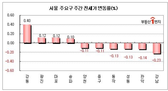 [아시아경제 박미주 기자]서울 강동구에서 시작된 전셋값 상승세가 하남, 송파 지역으로 전이되고 있다. 서울의 강남 이외지역과 수도권 대부분의 지역에서 약세인 전세시장 상황과 정반대다. 고덕시영의 이주로 늘어나는 강동의 전세수요가 주변 지역에 영향을 미쳤다는 분석이다.부동산정보업체인 부동산1번지가 1월 둘째 주 서울 및 수도권 아파트 전세가격 변동률을 조사한 결과, 경기 하남이 0.54%로 가장 큰 오름세를 보였다. 서울에서는 강동이 0.40%로 가장 높은 상승률을 나타냈다. 이어 마포·광진(0.12%), 송파(0.10%) 순으로 높았다. 서울( -0.01%), 인천(-0.03%) 지역 평균 전세가는 떨어졌다. 경기도는 보합세다. 이런 상황에서 강동과 인접 지역인 하남, 송파, 광진 지역의 전세가가 올랐다. 강동구는 고덕시영 인근 단지의 전셋값이 상승했다. 며칠 사이 1000만~2000만원 가량 올랐지만 매물을 찾아보기 어렵다. 고덕동 고덕주공2단지 52㎡는 1억~1억2000만원 선으로 1000만원 가량 상승했다. 6월에는 인근의 고덕주공4, 7단지에서 1300여 가구가 이주를 앞두고 있어 잠재적 전세 수요가 증가할 것으로 보인다.송파구의 전셋값도 상승세로 돌아섰다. 부동산1번지 관계자는 "명절 이후 봄 이사를 준비하는 수요와 고덕시영 이주 수요자들로 문의가 눈에 띄게 늘었다"고 설명했다. 아직은 매물에 여유가 있는 편이지만 설 명절 이후에는 봄 이사철 성수기에 진입해 전세가격이 더 상승할 것이라는 예상이다. 방이동 올림픽선기자촌 112㎡ 전세가는 3억3000만~4억 선으로 500만원 가량 올랐다.하남시는 봄 이사 수요로 창우동 소형아파트 전세가가 500만~750만원 가량 상승했다. 창우동 부영 66㎡가 500만원 올라 1억2000만~1억4000만원 선이다. 하남 덕풍동 인근 공인중개사는 "강동구쪽 부동산에서 소형평수를 찾는 전화가 종종 온다"고 전했다. 이어 "아직 문의가 많지는 않다"며 "본격적으로 이주가 시작되면 여파가 있을 것"이라 덧붙였다.개학을 앞두고 이사철 수요가 움직여서라는 분석도 있다. 나기숙 부동산1번지 팀장은 "강동구 인근 지역의 전세가가 오르기는 했지만 전세철과 맞물려 국지적으로 오른 것일 수도 있다"며 "시간이 지날수록 전세상승 지역이 넓어질 수 있으니 상황을 더 지켜봐야 한다"고 말했다.경기지역으로 눈을 돌려보면 오산(-0.26%), 용인(-0.21%), 광명(-0.15%), 과천(-0.10%)등의 전셋값이 내렸고 하남(0.54%)과 안산(0.22%)이 올랐다. 신도시는 평촌(0.13%)이 상승했다. 평촌은 신혼부부 수요 등이 증가하면서 중소형 위주가 강세다. 관양동 한가람세경 66㎡는 1500만원 오른 1억5000만~1억7000만원에 시세가 형성됐다.아파트 매매가격의 경우는 서울 -0.04%, 경기 -0.01%, 인천 -0.07%로 집계됐다. 신도시는 보합세를 보였다.서울은 강동(-0.16%), 송파(-0.13%), 강남(-0.12%), 서초(-0.10%) 순으로 하락했다. 부동산1번지 관계자는 "취득세 추가 감면 혜택 종료로 매수 심리가 더욱 위축되면서 거래 공백 기간이 길어지고 있다"고 말했다.신도시는 이번 주 전 지역에서 보합을 나타냈다. 리모델링 수평증축 통과 이후 분당, 평촌 등 1기 신도시들이 수혜지역으로 관심을 받았지만 부동산시장 침체와 비수기의 영향으로 거래로 이어지지 못했다. 경기는 남양주 (-0.12%), 화성(-0.11%), 부천(-0.10%), 의왕(-0.09%), 과천(-0.07%) 순으로 내렸다. 나머지 지역은 보합세를 기록했다.