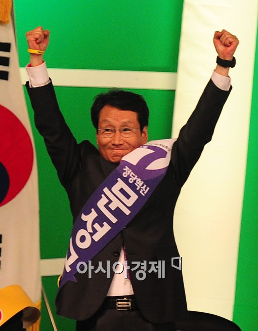 [아시아경제 윤동주 기자] 15일 일산 킨텍스에서 열린 민주통합당 당대표 및 최고위원 선출대회에서 최고위원으로 선출된 문성근 후보가 두 손을 불끈 쥐고 기쁨을 표현하고 있다.윤동주 기자 doso7@<ⓒ세계를 보는 창 경제를 보는 눈, 아시아경제(www.asiae.co.kr) 무단전재 배포금지>