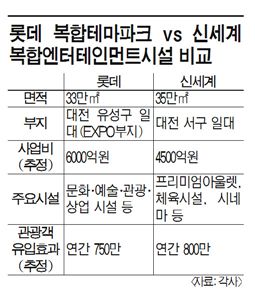 신세계, 복합엔터테인먼트 건설...롯데, 테마파크 맞불[아시아경제 이윤재 기자] 롯데와 신세계가 대전에서 '신성장동력'을 앞세워 정면승부를 벌인다.롯데는 '복합테마파크', 신세계는 '복합엔터테인먼트시설'이라는 이름으로 같은 시장에서 비슷한 개념의 복합상업시설로 맞붙는 것. 사업의 성격과 규모, 투자비, 개점시기가 모두 비슷해 양사의 자존심 싸움이 펼쳐질 것으로 예상된다.17일 롯데와 신세계 등 관련업계에 따르면 먼저 발을 내디딘 쪽은 신세계다. 지난 2010년 4월 정용진 신세계그룹 부회장은 대전으로 내려가 염홍철 대전시장과 '대전복합유통시설' 개발에 대한 양해각서(MOU)를 맺었다. 대전시가 대전도시개발 공사를 통해 대전 서구 관저동 일대에 부지를 개발하고, 신세계는 이중 35만㎡(10만5875평) 규모에 교외형 복합엔터테인먼트시설을 건설키로 했다.신세계가 터를 다진 전장에 경쟁의 불씨를 던진 곳은 롯데다. 16일 롯데는 대전시와 대규모 복합테마파크를 조성한다는 계획으로 MOU를 맺었다. 염홍철 대전시장과 이철우 롯데쇼핑 대표, 정기석 롯데월드 대표가 참석한 MOU에서 대전시와 롯데는 기존의 엑스포(EXPO) 부지를 활용해 복합테마파크를 함께 짓는데 뜻을 모았다. 대전시는 '엑스포(EXPO) 재창조 사업'을 통해 부지를 조성하고, 롯데는 33만㎡(10만평)의 땅에 문화ㆍ예술ㆍ관광ㆍ상업 등 다양한 기능이 어우러진 시설을 짓게된다.양사가 추진하고 있는 복합시설은 대전 도심을 사이에 두고 직선거리로 10km 남짓 떨어져있다. 기존의 백화점과는 달리 대규모 복합 시설이라는 점에서 성격이 비슷하다. 또 대전을 비롯한 충청 상권을 겨냥했다는 점을 감안하면 유통 라이벌의 일대 격전은 불 보듯 뻔한 상황이다.특히 이번에 추진하는 복합시설이 양사의 미래 성장 동력이 될 것이라는 점에서 롯데와 신세계의 경쟁은 더 뜨거울 것으로 보인다. 신세계는 지난해 이마트와 기업분리를 마치고 2020년까지 연매출 15조원의 국내 대표 백화점으로 성장하겠다는 목표를 내놓았다. 그 핵심 전략중에 하나로 복합쇼핑몰 등 다양한 형태의 신규 출점을 꼽은 바 있다. 현재 대전 뿐 아니라 경기도 하남에서도 MOU를 맺고 '유니온스퀘어'라는 이름으로 복합엔터테인먼트 시설 건립을 진행중이다.롯데도 상황은 마찬가지다. 롯데는 이미 복합쇼핑몰에 발을 내디뎠다. 지난해 12월 서울 방화동 김포공항 국제청사 맞은편에 '롯데몰 김포공항'의 문을 열었다. 롯데몰 김포공항은 롯데백화점과 마트, 시네마, 호텔까지 모두 아우른 복합쇼핑몰로 롯데는 향후 국내 시장 개발이 이 같은 형태로 진행될 것이라고 선언했다. 때문에 양사의 대전 격돌은 자존심 싸움으로 커질 수 있다는 지적이 벌써부터 나오고 있다. 이미 양사는 파주에서 프리미엄아웃렛으로 자존심 싸움을 벌인바 있어 이번 대전 격돌은 더 흥미를 끌 것으로 보인다. 이철우 대표는 16일 MOU를 맺으며 "엑스포 재창조 사업을 통해 지역민에게 문화가 있는 여가생활을 제공해 지역의 랜트마크로 키울 것"이라고 밝혔다. 신세계 정 부회장은 지난 2010년 MOU를 맺을 당시 "대전 복합엔터테인먼트 시설은 충청권을 포함해 영호남권, 수도권 광역상권을 대상으로 계획했다"며 "지역상생을 위해 대전시와 협의해 프로그램을 진행해 나갈 것"이라고 말한 바 있다.유통업계 관계자는 "국내 백화점 양대 라이벌이 비슷한 성격과 규모로 같은 2015년 완공을 목표로 맞붙었기 때문에 치열한 경쟁을 벌일 것"이라며 "미래 성장동력으로 맞붙은 만큼 경쟁에서 뒤진다면 기업 전체에 미치는 영향도 적지 않을 것"이라고 내다봤다.이윤재 기자 gal-run@<ⓒ세계를 보는 창 경제를 보는 눈, 아시아경제(www.asiae.co.kr) 무단전재 배포금지>