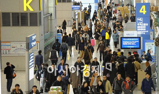[아시아경제 윤동주 기자] 본격적인 설 연휴가 시작된 19일 연휴를 해외에서 보내려는 사람들로 인천국제공항 출국장이 분주하다. 인천국제공항공사에 따르면 설 연휴기간 인천공항 을 이용해 해외로 나가는 출국자수는 27만2천796명 등 국내선 이용객과 입국 자를 포함하면 총 55만9천23명으로 설 연휴 최대치라고 공사는 설명했다.윤동주 기자 doso7@<ⓒ세계를 보는 창 경제를 보는 눈, 아시아경제(www.asiae.co.kr) 무단전재 배포금지>