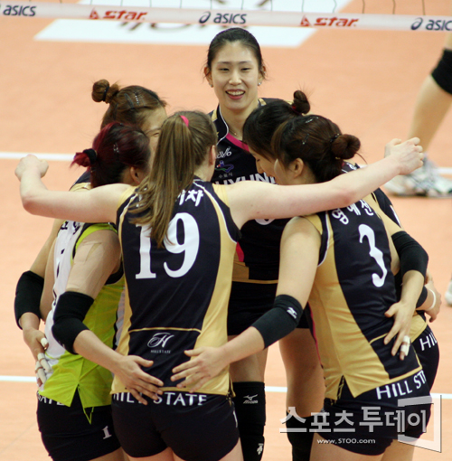 [수원=스포츠투데이 정재훈 기자] 22일 오후 수원실내체육관에서 열린 'NH 농협 2011-2012 V리그' 현대건설과 GS칼텍스의 경기에서 득점에 성공한 현대건설 선수들이 기뻐하고 있다.스포츠투데이 정재훈 사진기자 roze@<ⓒ아시아경제 & 재밌는 뉴스, 즐거운 하루 "스포츠투데이(stoo.com)">정재훈 사진기자 roze@<ⓒ아시아 대표 석간 '아시아경제' (www.newsva.co.kr) 무단전재 배포금지>