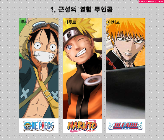 소년만화에 있어 가장 중요한 플롯은 주인공의 성장이다. 좋은 선생님은 그래서 필요하다. 하지만 ‘원.나.블’의 스승들은 무협지 속 스승처럼 자신이 가진 무적의 비기를 전수해주는 인물들이 아니다. 그것은 결국 전통의 대물림이다. 루피의 우상 붉은 머리 샹크스나 나루토의 스승 지라이야, 이치고의 전투 능력을 각성시킨 우라하라 사스케 등은 자신의 것을 고스란히 물려주기보다는 주인공이 자신을 뛰어넘을 수 있도록 일종의 산파 역할을 해준다. 사실 샹크스가 루피에게 특별히 가르쳐준 것은 없다. 다만 루피를 구하기 위해 자신의 팔 하나를 희생한 그는 어떤 적에게 팔을 잃었느냐 묻는 흰 수염에게 이렇게 말한다. “새로운 시대에 선사하고 왔지.” 샹크스를 통해 루피는 해적의 꺾이지 않는 의지를 신념 삼아 바다로 나서고, 어느새 새 시대를 대표하는 최고의 대형 루키가 된다. 가장 사제 관계가 명확한 지라이야와 나루토의 사이에도 나선환 이외의 비기 전수는 이뤄지지 않는다. 그보다는 그가 남긴 <근성 닌자전>의 사상, 증오가 만연한 닌자 세계를 평화로 이끌 답은 무엇인지에 대한 질문이 나루토를 지라이야를 능가하는 일류 닌자로 성장케 한다. “스승이라고 불러도 될지도 잘 모르겠다만 싸움을 가르쳐준 사람”(이치고)인 우라하라 키스케의 경우 싸움 자체의 기술보다는 강한 적을 공략하는 요령과 마음가짐을 강조한다. 참백도 해방이라는 것이 결국 자신만의 능력을 발현하는 것이라는 건 그래서 중요하다. 세계는 넓고 강한 놈들은 많다. 하지만 주인공은 그곳의 정점에 서는 자가 아니다. 스승도, 최강의 적도, 세계관도, 모든 것을 뛰어넘어 자신의 시대를 여는 존재, 그것이 소년만화의 주인공이다.<10 아시아>와 사전협의 없이 본 기사의 무단 인용이나 도용, 전재 및 재배포를 금합니다. 이를 어길 시민, 형사상 책임을 질 수 있습니다. 10 아시아 글. 위근우 기자 eight@10 아시아 편집. 장경진 three@<ⓒ즐거움의 공장 "10 아시아" (10.asiae.co.kr) 무단전재 배포금지>