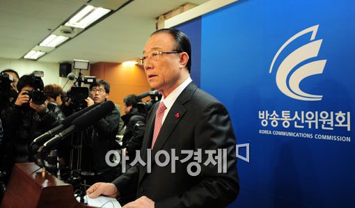 [아시아경제 윤동주 기자] 최시중 방송통신위원장이 27일 서울 광화문 방통위에서 사퇴 기자회견을 갖고 있다.윤동주 기자 doso7@<ⓒ세계를 보는 창 경제를 보는 눈, 아시아경제(www.asiae.co.kr) 무단전재 배포금지>