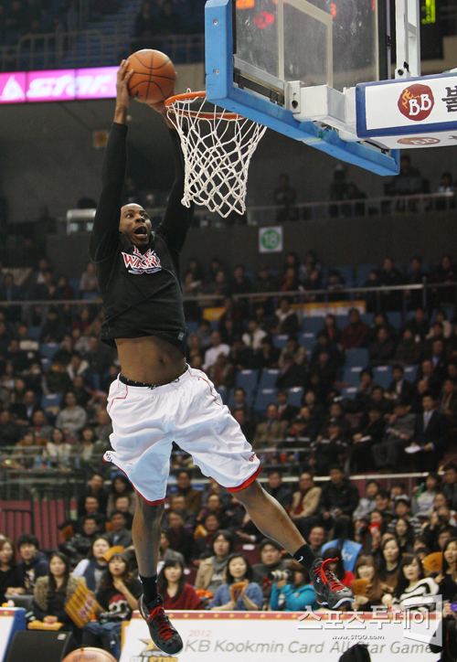 [스포츠투데이 정재훈 기자] 29일 오후 잠실실내체육관에서 '2012 KB 국민카드 프로농구 올스타전' 덩크슛 콘테스트에 참가한 KT 찰스 로드가 덩크슛을 시도하고 있다.스포츠투데이 정재훈 사진기자 roze@<ⓒ아시아경제 & 재밌는 뉴스, 즐거운 하루 "스포츠투데이(stoo.com)">