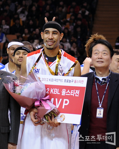 [스포츠투데이 이종길 기자]문태영이 드림팀의 승리를 견인하며 ‘별 중의 별’로 떠올랐다.문태영은 29일 서울 잠실실내체육관에서 펼쳐진 2012 KB국민카드 프로농구 올스타전에서 24득점 10리바운드로 펄펄 날았다. 4도움까지 더 해진 맹활약에 동부, 모비스, LG, 오리온스, KT로 구성된 드림팀은 삼성, SK, 전자랜드, KCC, KGC가 손을 맞잡은 매직팀에 143-119로 승리, 지난 석패(102-108)를 되갚았다. 경기 뒤 문태영은 선전을 인정받아 최우수선수(MVP)로 선정됐다. 국내로 귀화한 혼혈선수가 올스타전 MVP를 거머쥔 건 이동준(2009년), 이승준(2010년)에 이어 이번이 세 번째다. 이승준은 덩크 슛을 10개나 꽂아 넣으며 양 팀 통틀어 최다인 27득점을 기록했지만 팀 패배로 수상의 기회를 놓쳤다. 드림팀은 문태영 외에도 양동근과 로드 벤슨이 각각 25득점과 24득점으로 눈부신 활약을 펼쳤다. 12득점 9리바운드 14도움을 기록한 크리스 윌리엄스는 리바운드 1개가 모자라 아쉽게 트리플더블을 놓쳤다.농구인과 팬들의 축제에서 애당초 승패는 중요하지 않았다. 선수들은 제각각 갈고닦은 개인기를 뽐내며 관중들의 환호를 이끌어냈다. 가장 많은 박수를 얻은 건 이승준이었다. 상대 수비에 빈틈이 생길 때마다 골밑을 침투, 호쾌한 덩크 슛을 내리찍었다. 하지만 관심을 모은 덩크슛 콘테스트는 컨디션 저하를 이유로 불참했다. 앞서 그는 2년 연속 이 부문 국내 선수 부문 1위를 거머쥔 바 있다. 공백은 농구만화 ‘슬램덩크’의 강백호로 변신한 김현민의 활약으로 메워졌다. 붉게 물들인 머리에 북산 유니폼을 입고 등장한 그는 골밑에 엎드린 세 명을 뛰어넘어 덩크를 작렬, 덩크슛 콘테스트 우승을 차지했다. 함께 열린 3점 슛 콘테스트에서는 막판 매서운 집중력을 발휘한 전태풍이 이시준을 간발차로 누르고 우승컵을 들어올렸다. 한편 유력한 신인왕 후보로 손꼽히는 오세근은 이벤트 경기로 펼쳐진 1대1 대결에서 최진수와 김선형을 나란히 제치고 승리의 기쁨을 만끽했다.