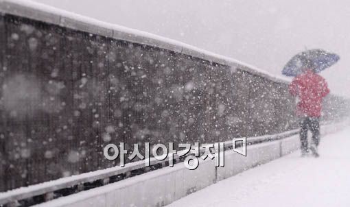 [아시아경제 양지웅 기자] 서울지역에 대설주의보가 발효되는 등 중부지방을 중심으로 굵은 눈발이 내리는 31일 오후 서울 한강대교에 한 시민이 걸어가고 있다.양지웅 기자 yangdoo@<ⓒ세계를 보는 창 경제를 보는 눈, 아시아경제(www.asiae.co.kr) 무단전재 배포금지>