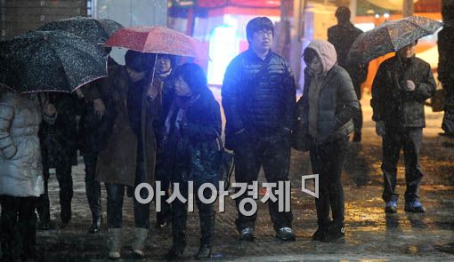 [아시아경제 양지웅 기자] 서울지역에 대설주의보가 발효되는 등 중부지방을 중심으로 굵은 눈발이 내리는 31일 오후 서울 신용산역 부근에서 시민들이 귀가길을 재촉하고 있다.양지웅 기자 yangdoo@<ⓒ세계를 보는 창 경제를 보는 눈, 아시아경제(www.asiae.co.kr) 무단전재 배포금지>