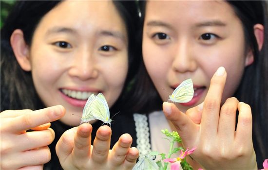 [아시아경제 조용준 기자]55년만에 강추위가 찾아온 2일 경기도 용인 에버랜드 곤충사육장에서는 큰줄흰나비가 화사한 자태를 자랑하고 있다. 에버랜드는 4일부터 1천여 마리의 나비와 만나는 '미리 만나는 봄' 행사를 진행할 계획이다.