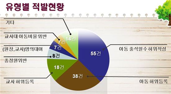 [아시아경제 오진희 기자] # 서울시내 OO구 OO어린이집 원장이 지난 2009년 2월부터 3명의 교사를 시간연장 및 보육교사로 허위등록하고 보육교사 자격이 없는 이를 채용해 보육교사로 행세하게 해 6091만5000원의 보조금을 부당 수령한 것이 발각됐다. 서울시는 이 어린이집에 대해 보조금 전액을 반환토록 명령하고, 시설운영정지 3개월, 원장 자격정지 3개월, 명의를 대여한 보육교사 3명의 자격취소와 해당내용을 경찰서에 고발했다. # 서울시 OO구 OO어린이집 원장은 학부모와 담합해 매월 일정액을 부모의 통장에 입금해주는 대가로 시설을 이용하지 않은 아동 4명을 허위 등록해 보육료와 차등보육료를 부정수령했다. 또한 자격이 없는 사람 3명을 보육교사로 허위등록했다. 이같은 사실이 적발돼 시는 보조금 5372만7000원을 반환하고 시설운영정지 9개월, 원장자격정지, 명의 대여한 보육교사 3명의 자격취소 등을 명령했다. 이같이 부정, 비리를 저질러 서울시가 지난해 적발한 어린이집은 총 135곳으로 나타났다. 시는 해당 어린이집들에 대해 총 8억5340만원 규모의 보조금을 환수했다.서울시는 지난 한해 동안 시와 자치구 담당공무원(연인원1560명)을 대대적으로 투입해 지난 일년 동안 서울시내 5870개소의 어린이집 중 82%인 4834개소를 전수 조사해 이같이 조치했다고 6일 밝혔다. 이번에 적발된 어린이집은 국공립 3곳, 민간 79곳, 가정 53개소 총 135개소로 점검대상 어린이집의 2.8%에 해당한다. 위반유형별로는 ▲아동 수 허위등록 38건 ▲교사 수 허위등록 18건 ▲아동 출석일수 허위작성 55건 ▲교사대 아동비율 위반 7건 ▲총 정원 위반 7건 ▲시설장(교사) 명의 대여 7건 ▲기타 14건 등이다.시는 이에대해 행정처분으로 135개 시설에 대해 부정 지급된 총 8억5354만원의 보조금을 환수하고, 84곳은 원아모집정지 및 시설운영정지, 2곳은 시설 폐쇄 등 강력 처분했다. 시설장이나 교사 자격정지는 91건, 자격취소 20건, 고발이 23건에 이른다. 이번 조치와 더불어 시는 '어린이집 보조금 부정수급 8대 근절대책'을 발표했다. 예방조치는 ▲온라인시스템을 활용한 상시 모니터링 강화 ▲안심모니터링단 연중 운영 ▲어린이집 운영 전면 공개 단계적 추진 ▲어린이집 원장 교육 강화 ▲지도점검 전담팀 신설을 통한 수시점검 등 5가지다. 앞으로 서울시는 급식비 과다(과소), 현금 과다 지출, 아동 및 교사 배치기준 부적정, 보육교사 이직이 빈번한 시설, 생후 60일미만의 아동이 등록된 시설 등을 중점적으로 점검할 방침이다. 연중 운영될 안심모니터링단은 보육전문가 80명으로 구성된다. 또 현재 2656곳인 서울형 어린이집에 대해서는 공인 후 3년이 경과된 시설에 대한 재평가를 통해 보육서비스의 질 향상을 도모할 계획이다. 평가항목은 맞춤보육, 안심보육, 클린운영, 보육인력의 전문성 등이다. 더불어 어린이집 원장을 대상으로 3년에 1번 실시하던 인성 및 법규관련 교육을 년 1회 이상으로 실시해 전문성을 높일 예정이다. 사후조치로는 ▲단 한번 적발 시에도 서울형 어린이집 공인을 취소하는 원스트라이크 아웃제 적용 ▲지도점검 결과 투명하게 온라인 공개 ▲현행 솜방망이에 가까운 처벌기준 강화위한 영유아보육법 개정 건의 등이 있다. 원스트라이크 아웃제 적용에 따라 이번 전수조사에서 적발된 서울형 어린이집 20곳이 공인 취소됐다. 행정처분 결과는 서울시 보육포털시스템에 공개해 어린이집에 대한 정보를 누구나 열람 가능하도록 추진한다.서울시는 임의조항으로 돼있는 영유아보육법 제54조(벌칙)의 조항을 반드시 고발하도록 하는 의무조항으로 개정하도록 보건복지부에 건의할 방침이다. 시는 영유아보육법 제46조에 규정된 시설장에 대한 자격정지 1차(3개월), 2차(6개월), 3차(1년)를 영유아보육법 제45조의 규정에 의한 시설의 운영정지와 동일하게 2차부터 시설장의 자격을 취소토록 할 예정이다.황요한 서울시 여성가족정책실 보육담당관은 “시민들의 보육부담을 덜기 위해 보조하는 정부와 지자체, 자치구 보육예산이 한 푼도 허투루 쓰이는 일이 없도록 철저하게 관리해 나가겠다”고 말했다.오진희 기자 valere@<ⓒ세계를 보는 창 경제를 보는 눈, 아시아경제(www.asiae.co.kr) 무단전재 배포금지>