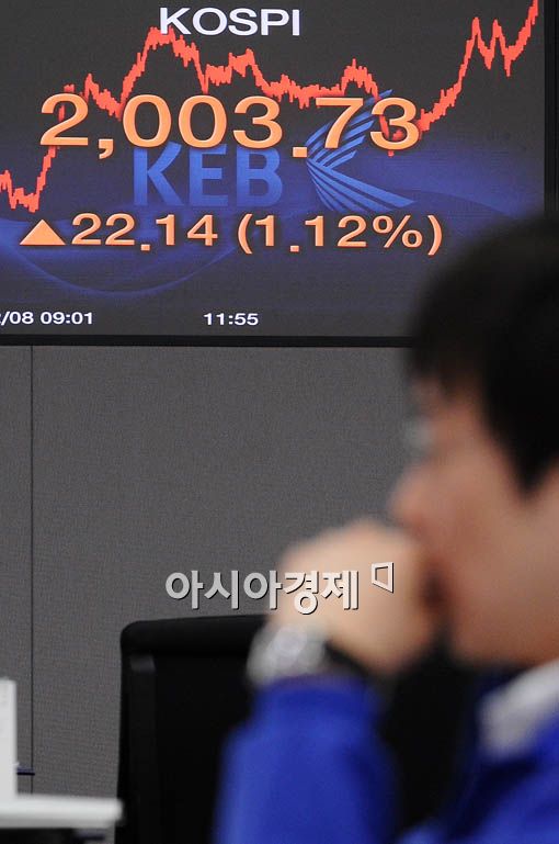 [아시아경제 양지웅 기자] 코스피 지수가 전일 대비 22.14포인트(1.12%) 오른 2003.73에 장을 마친 8일 오후 서울 명동 외환은행 본점에서 직원들이 분주히 움직이고 있다.양지웅 기자 yangdoo@<ⓒ세계를 보는 창 경제를 보는 눈, 아시아경제(www.asiae.co.kr) 무단전재 배포금지>