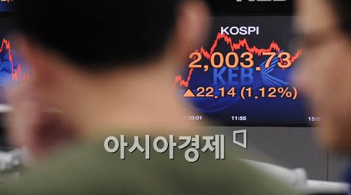 [아시아경제 양지웅 기자] 코스피 지수가 전일 대비 22.14포인트(1.12%) 오른 2003.73에 장을 마친 8일 오후 서울 명동 외환은행 본점에서 직원들이 분주히 움직이고 있다. 양지웅 기자 yangdoo@<ⓒ세계를 보는 창 경제를 보는 눈, 아시아경제(www.asiae.co.kr) 무단전재 배포금지>