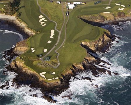 [아시아경제 김현준 골프전문기자] ○…페블비치의 '운명의 절벽(Cliffs of Doom)'.왼쪽이 6번홀(파5), 아래가 7번홀(파3), 오른쪽이 8번홀(파4)이다. 낭떠러지와 맞닿아있는, 그래서 '운명의 절벽'이란 애칭을 가졌다. 바로 그 유명한 페블비치골프링크스(파72ㆍ6816야드)다. 이번 주에는 특히 10일(한국시간)부터 미국프로골프(PGA)투어 AT&T페블비치 내셔널프로암대회(총상금 640만 달러)가 대장정에 돌입했고, '무관의 황제' 타이거 우즈(미국)가 등장해 지구촌 골프계의 최대 화두로 떠올랐다.'세계 100대골프장' 가운데서도 언제나 1, 2위를 다툴 정도로 자타가 공인하는 명코스다. '옛날 골프황제' 잭 니클로스(미국)는 "골퍼라면 죽기 전에 꼭 라운드해야 할 코스'로 꼽았다. 모스 부호 발명가인 S. 모스의 손자인 새뮤얼 모스가 마차를 타고 지나가다가 절경에 반해 오랫동안 골프장을 꿈꿨고, 마침내 윌리엄 크로크라는 재력가와 합세해 골프장을 조성했다. 당시 아마추어 챔피언이었던 잭 내빌이 설계와 시공을 맡아 미국 서부 몬트레이반도의 해안선을 그대로 살려 만들었다. 대부분의 홀들이 태평양의 거센 파도를 온 몸으로 느낄 수 있는 그야말로 '시사이드'다. '원웨이'로 설계돼 오직 18홀을 모두 마쳐야 클럽하우스로 돌아올 수 있다는 점도 독특하다. 사진=골프닷컴 캡처.