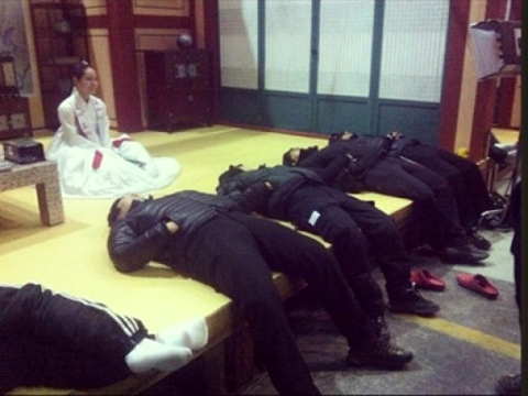 지난 9일 MBC 수목드라마 ‘해를 품은 달’의 한 스태프가 자신의 트위터에 한가인과 촬영스태프들이 함께 찍은 사진을 게재해 관심을 모았다. 사진 속에서 한가인은 무녀 의상을 입고 훤(김수현)의 침소에 다소곳이 앉아 있고 그 앞에는 검은색 옷을 입은 스태프들이 일렬로 누워있다. 바로 ‘액받이 무녀’인 한가인이 잠든 훤을 지키는 장면을 패러디한 것이다.사진을 접한 누리꾼들은 "촬영현장이 화기애애한 것 같다", "스태프들이 센스 있으시다", “요즘은 해품달이 대세”라며 높은 관심을 보였다. 김현희 기자 faith100@<ⓒ세계를 보는 창 경제를 보는 눈, 아시아경제(www.asiae.co.kr) 무단전재 배포금지>