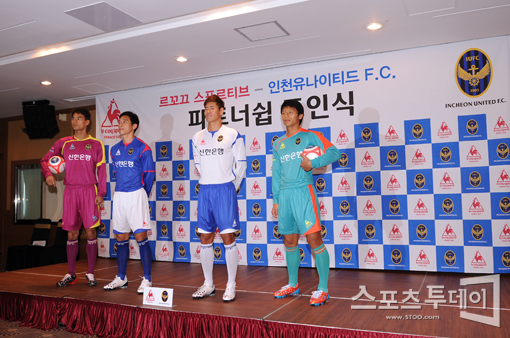 [인천=스포츠투데이 정재훈 기자] 인천 유나이티드가 13일 오전 인천 송도파크호텔에서 르꼬끄 스포르티브와 파트너쉽 조인식 및 유니폼 발표회을 가졌다.스포츠투데이 정재훈 사진기자 roze@<ⓒ아시아경제 & 재밌는 뉴스, 즐거운 하루 "스포츠투데이(stoo.com)">