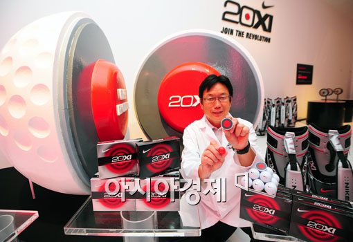 [아시아경제 윤동주 기자] 나이키 골프 코리아는 14일 서울 청담동 비욘드뮤지엄에서 골프 업계 최초로 혁신 신소재 RZN(레진) 코어를 탑재한 골프 볼 '20XI(투엔티엑스아이)'를 출시, 골프 볼 개발자인 록 이시이씨가 직접 볼을 선보이고 있다. '20XI'는 골프 볼의 핵심인 코어를 기존 고무 코어 대신 레진 코어를 사용하여 비거리를 증대시키고, 샷의 정확도를 높여주는것이 특징이다.윤동주 기자 doso7@<ⓒ세계를 보는 창 경제를 보는 눈, 아시아경제(www.asiae.co.kr) 무단전재 배포금지>