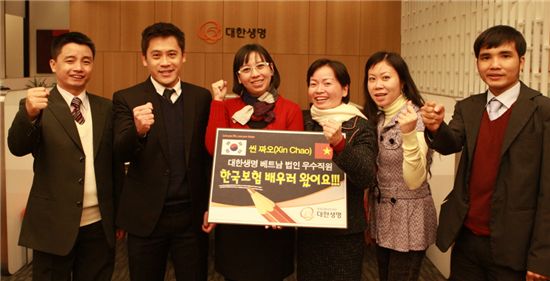 [아시아경제 조태진 기자]대한생명은 베트남법인 우수직원을 대상으로 지난 13일 부터 본사 연수를 실시하고 있다고 16일 밝혔다.이번 연수에는 응웬 티 탄 푸엉(영업지원팀), 레 꽝(재무회계팀), 팜 탄 뚜언(IT) 등 6명이 참여했다. 이들은 대한생명 베트남 법인에서 2년이상 근속한 직원 중 각 부서별로 평가가 가장 우수한 직원이다.이들은 연수기간 동안 대한생명 회사 전반에 대한 설명 뿐 아니라 업무 분야인 IT, 자산운용, 고객서비스, 사회공헌활동 노하우를 습득했다.응웬 티 탄 푸엉씨는 "그동안 업무를 해오면서 궁금한 부분이 많았는데, 이번 연수를 통해 한국의 선진사례를 접하다보니 앞으로 추진해야할 업무 방향이 명확해졌다"며 "또한 본사인 63빌딩의 웅장함에 자긍심을 느꼈으며 베트남에도 63빌딩을 세우는 게 목표가 됐다"고 말했다대한생명 베트남법인은 신계약 실적 기준으로 지난 2009년 308억동(VDN, 한화 16억 6300만원)에서 2011년 837억동(한화 45억 2000만원)으로 271.7% 증가했으며, 점포 수도 같은 기간 동안 5개에서 16개로 세 배 이상 늘었다.대한생명이 베트남 생보시장에서 성공적으로 정착할 수 있었던 것은 철저한 현지화 전략에 있다. 151명의 직원 중 한국인은 법인장을 포함한 3명 뿐이다. 이러한 현지화 전략의 일환으로 이번에 베트남 법인의 우수 직원을 대상으로 한 연수를 올해 처음 실시한 것이며 앞으로 매년 정기적으로 실시할 계획이다. 조태진 기자 tjjo@<ⓒ세계를 보는 창 경제를 보는 눈, 아시아경제(www.asiae.co.kr) 무단전재 배포금지>