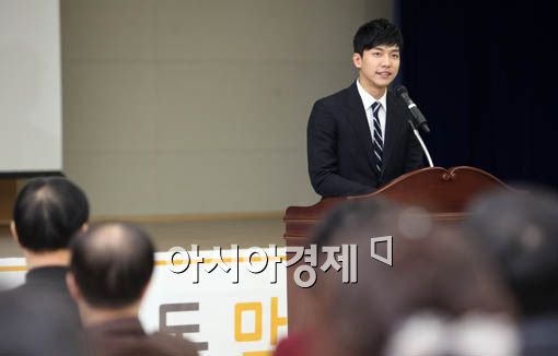 [아시아경제 양지웅 기자] 16일 오후 서울 여의도 국민은행 본사에서 열린 `국민은행 맞춤형 서민금융상담` 행사에서 배우 이승기가 인사말을 하고 있다.양지웅 기자 yangdoo@<ⓒ세계를 보는 창 경제를 보는 눈, 아시아경제(www.asiae.co.kr) 무단전재 배포금지>