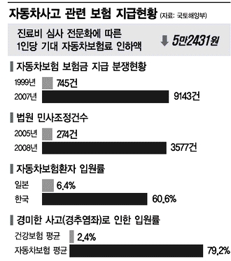 [아시아경제 신범수 기자]이르면 오는 11월 자동차 보험금 심사가 전문기관인 심평원으로 일원화돼 보험금을 더 타기 위해 병원을 과다하게 이용하는 이른바 '나이롱 환자'가 크게 줄어들 전망이다. 건강보험심사평가원(심평원)는 20일 자동차보험 심사업무를 일원화 하는 내용의 자동차손해배상보장법 일부개정법률안이 이번 주 안으로 정식 공포된다고 밝혔다. 이 법안은 자동차 보험회사가 하고 있는 '진료비 심사'를 전문기관인 심평원에 위탁하는 법률 근거를 담고 있다. 황용상 심평원 자보심사총괄팀장은 "심평원이 통일된 기준으로 진료비를 심사하면 과다진료나 부적절한 의료기관 이용 행태를 바로잡을 수 있을 것"이라고 말했다. 심평원 등에 따르면 목이 삐끗한 경미한 사고의 입원율은 건강보험 환자(일반적인 사고)는 2.4%인데 비해, 자동차 사고 후 입원율은 79.2%에 이른다. 같은 자동차 사고라도 일본의 입원율은 6.4%인데 우리나라는 60.4%로 10배에 이른다. 이는 보험자가 입원을 해야 보험금을 탈 수 있거나, 입원 일수에 따라 보험금을 받는 상품에 가입한 게 많기 때문이다. 병원도 일반 환자보다 진료비를 더 받을 수 있어 나이롱 환자를 방치하고 있는 것으로 파악되고 있다.국토부는 자동차 사고 환자의 입원 기준을 엄격하게 적용하면 보험금을 연간 8564억원 줄여, 1인당 보험료를 7.6%인 5만 2431원 낮출 수 있을 것으로 보고 있다.황 팀장은 "전문성이 없는 보험회사의 진료비 지불 거절에 병원이 수긍하지 않아 분쟁이 끊이지 않았다"면서 "앞으로는 삭감을 우려해 병원이 처음부터 적정진료를 하는 일종의 '경찰효과'가 기대된다"고 말했다.국토부는 현재 시행령과 시행규칙, 심사 가이드라인 등을 마련하고 있다. 그러나 입퇴원 가이드라인을 보험 약관에 넣어 구속력을 갖게 하는 방안에 대해 의료계가 "환자에 따라 상태가 다를 수 있는데 일괄적 기준을 적용하면 진료 자율권이 훼손된다"며 반대하고 있어 합의가 쉽지 않다. 국토부 관계자는 "의료계의 주장에도 일리가 있어 가이드라인 적용을 강제하지 않고 소비자가 선택할 수 있게 하는 방안 등을 고려하고 있다"고 말했다.신범수 기자 answer@<ⓒ세계를 보는 창 경제를 보는 눈, 아시아경제(www.asiae.co.kr) 무단전재 배포금지>신범수 기자 answer@<ⓒ세계를 보는 창 경제를 보는 눈, 아시아경제(www.asiae.co.kr) 무단전재 배포금지>