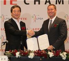 올해 창설하는 LPGA롯데챔피언십이 공식 조인식을 가졌다. 롯데그룹은 20일 서울 소공동 롯데호텔에서 마이크 완 미국여자프로골프(LPGA)투어 커미셔너가 참석한 가운데 조인식을 열고 오는 4월19일(한국시간) 미국 하와이 코올리나골프장에서 개막하는 대회 일정을 발표했다. 총상금 170만 달러 규모에 144명의 선수가 출전한다.마이크 완 투어 커미셔너는 "롯데그룹의 글로벌 정책이 LPGA투어의 골프마케팅을 통해 이뤄질 것"이라며 "한국 팬들의 TV 시청을 위해 최종일 경기도 한국시간으로 일요일에 끝나도록 조정했다"고 강조했다. J골프에서 생중계할 예정이다. <ⓒ세계를 보는 창 경제를 보는 눈, 아시아경제(www.asiae.co.kr) 무단전재 배포금지>