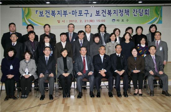 [아시아경제 박종일 기자]마포구(구청장 박홍섭)는 21일 오후 3시부터 우리마포복지관 1층 강당에서 보건복지부와 '보건복지정책 간담회’가 개최됐다.손건익 보건복지부 차관과 김영호 마포구 부구청장 등 30여명이 참석한 가운데 마포구의 보건복지 주요 정책을 소개하고 2012년 보건복지부의 주요 정책 방향을 설명하는 시간을 가졌다. 이어 정책 등에 관한 자유토론 나눈 뒤 지난해 12월 개관한 우리마포복지관을 둘러보는 시간을 가지기도 했다. 구 관계자는“보건복지부이 주관, 일선 현장인 지자체를 방문해 보건복지정책에 관한 간담회를 개최함으로써 복지 마포로서의 위상을 더 높이고 다양한 복지정책의 건의하여 지역주민들의 복지증진에 힘쓸 수 있는 기회가 됐다”고 덧붙였다.박종일 기자 dream@<ⓒ세계를 보는 창 경제를 보는 눈, 아시아경제(www.asiae.co.kr) 무단전재 배포금지>