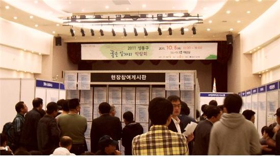 이에 성동구는 이들에게 공개적인 구인·구직의 장을 제공, 취업 기회 제공과 취업에 대한 자신감을 불어 넣어 주기 위해 이번 ‘민간기업 취업의 날’ 행사를 마련했다. 이번 행사에는 ‘지역공동체 일자리 사업’ 참여 신청자 190명과 지역내 구인 기업 20곳이 참가할 예정이다. 참여 구직자에게는 기업체 면접을 통한 채용 기회와 1:1 취업 컨설팅 참여 기회를 제공하고 구인 기업에게는 채용인원 1인 당 최대 6개월간 월 60만원 채용지원금이 지급된다.고재득 성동구청장은“취업 취약계층인 공공 일자리 참여자의 홀로서기를 도와주는 가장 좋은 방법은 ‘안정적인 일자리 취업’으로 이번 행사가 이들의 홀로서기를 위한 디딤돌이 되기를 바란다”고 말했다.박종일 기자 dream@<ⓒ세계를 보는 창 경제를 보는 눈, 아시아경제(www.asiae.co.kr) 무단전재 배포금지>