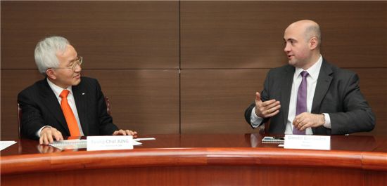 정병철 부회장(왼쪽), 디미트리 그빈다즈 조지아 재무부 장관<br />