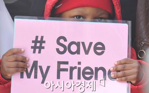 [아시아경제 양지웅 기자] 탈북자 강제북송 반대집회가 열린 26일 오후 서울 효자동 주한 중국대사관 앞에서 한 국제난민 어린이가 탈북자들을 구해달라는 구호가 담긴 손팻말을 들고 있다. 양지웅 기자 yangdoo@<ⓒ세계를 보는 창 경제를 보는 눈, 아시아경제(www.asiae.co.kr) 무단전재 배포금지>