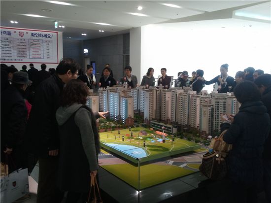 [아시아경제 박미주 기자]강남의 새 아파트에 대한 관심이 뜨겁다. 부동산 경기 침체에 버블세븐 아파트값도 떨어졌다지만 분양시장에서 '강남 불패'는 여전한 분위기다.지난 주말 서초구 양재역 1번 출구로 나와 쭉 길을 걷다 보니 차와 사람이 엉켜있었다. '방배 롯데캐슬 아르떼' 모델하우스 앞이다. 입구에는 사람들이 줄을 서서 경품을 받고 신발을 갈아 신었다.5층 모형이 있는 곳에는 사람이 더 많았다. 간간이 30대로 보이는 사람도 있었지만 대다수는 40~50대 중년 이상이었다.모델하우스를 둘러보던 이모(53)씨는 "3,4년 전만 못하지만 부동산 경기가 안 좋은 거에 비하면 사람들이 많은 편"이라고 말했다. 인근 서초동 래미안에 산다는 그는 "직장에 다니는 딸 2명이 출퇴근하기에 이쪽이 더 편리해서 와 봤다"며 "애들도 봐줘야 한다"고 덧붙였다.신혼부부도 있었다. 은행에 다닌다는 김모(30)씨는 "사당역 인근에 25평형 아파트에 전세살이 하고 있다"며 "동작구의 이수힐스테이트 모델하우스에도 다녀왔지만 아무래도 강남이라 그런지 와보게 됐는데 이곳에 사람들이 더 많다"고 전했다. 요즘 아파트 집값에 관심이 많다는 김씨는 "인근 이수힐스테이트의 평당 분양가는 2300만원, 방배 롯데캐슬은 예상보다 비싼 3200만원이지만 교통이 좋고 학군도 달라 '기왕이면 강남'이라는 인식이 작용한 것 같다"고 말했다.일산에서 왔다는 주부 박모(54)씨도 같은 반응이다. 박씨는 "강남이라 그런지 사람이 많은 것 같다"며 "저도 원래 서초구에 살았었다"고 설명했다. 그는 "일산이 쾌적하긴 한데 남편 직장이나 자녀 학교와 너무 멀고 집값도 많이 떨어져 재산 가치가 없다"고 푸념했다.은평구에 산다는 최모(59)씨 역시 "2년 간 서초구에 살았었다"며 "서초구에 언니와 동생이 있어 이곳으로 이사 오려고 한다"고 이유를 밝혔다. 이어 "분양가가 다소 비싸지만 강남에는 아직 수요층이 있는 것 같다"며 "방문한 사람들 중에 중산층이 70%정도 되는 것 같다"고 말했다. 최씨는 "아까 만난 노부부도 이 근처 사는데 자녀에게 20평대 집을 사줄 생각에 나왔다고 했다"고 전했다.현장 안내원의 말도 다르지 않다. 그는 "40~50대 중년층이 많다며 이 중 40% 정도는 자녀에게 집을 사주려고 방문한 사람들"이라고 설명했다.박손곤 방배롯데캐슬 분양소장은 "예상보다 인원이 많다"며 "40% 중도금 무이자, 발코니 확장, 시스템에어컨 설치 혜택과 인근 장재터널 예정, 전용면적 85㎡ 이하 비율이 88%인 영향도 있다"고 분석했다. 박 소장은 이어 "반포 등에 사는 연세 많은 사람들은 자녀에게 증여하겠다는 경우가 많다"며 "벤츠를 몰고 오는 사람도 많다"고 귀띔했다.24, 25일 방배롯데캐슬 모델하우스 방문객은 6756명이다. 박 소장은 26일 오후 6시까지는 9865명이 이 곳을 찾았다. 그 이후에도 꾸준히 방문이 이어져 1만명을 초과했다는 설명이다.이 같은 강남의 인기는 청약 경쟁률에서도 알 수 있다. 최근 강남구 도곡동에서 청약을 마친 '래미안 도곡 진달래'의 전용면적 59.98㎡ 1순위 경쟁률은 42대1이었다. 93.07㎡도 24대1을 기록했다.요즘 인기 지역인 세종시에서 분양하는 엠코타운의 경우 가장 높은 경쟁률이 59.94㎡ 1순위 기타지역 10.32대1이었다. 국토해양부가 발표한 미분양건수를 봐도 지방은 증가한 반면 서울은 감소했다. 이런 추세에서 강남의 청약 경쟁률과 모델하우스의 열기는 '강남 불패'를 방증한다.박미주 기자 beyond@<ⓒ세계를 보는 창 경제를 보는 눈, 아시아경제(www.asiae.co.kr) 무단전재 배포금지>