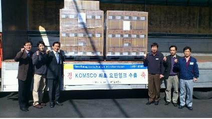 요판잉크 출고 모습. 사진 왼쪽 3번째가 김흥림 해외사업2단 단장.