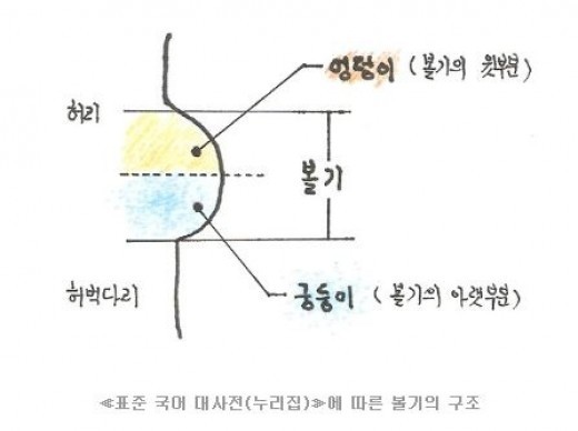 [아시아경제 장인서 기자] 엉덩이의 숨겨진 진실? 최근 한 온라인 커뮤니티 게시판에는 '엉덩이의 진실'이라는 제목으로 게시물 하나가 올라왔다.게시물은 인체의 둔부 부위를 간략하게 표현한 그림과 함께 상세 부위의 명칭을 구체적으로 설명하고 있다. 이에 따르면 허리부터 엉덩이의 가장 튀어나온 부위까지가 '엉덩이'에 해당하고 그 밑 부분은 '궁둥이'에 해당한다. 또 '엉덩이'와 '궁둥이' 부분을 다 포함한 전체 부위의 올바른 명칭은 '볼기'다. 한마디로 우리가 흔히 엉덩이라 통칭하는 부분은 볼기의 윗부분에만 해당되는 것.해당 게시물을 접한 네티즌들은 "처음 알았는데 재밌네요" "다 알고 있는 사실입니다" "나만 몰랐나?" 등 다양한 반응을 보이고 있다.장인서 기자 en1302@<ⓒ세계를 보는 창 경제를 보는 눈, 아시아경제(www.asiae.co.kr) 무단전재 배포금지>