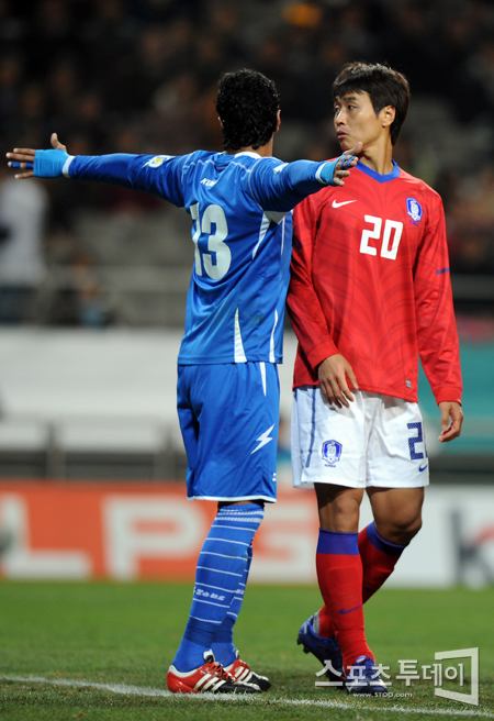 [스포츠투데이 정재훈 기자] 29일 오후 서울월드컵경기장에서 열린 2014 브라질 월드컵 아시아지역 3차 예선 최종전 한국과 쿠웨이트의 경기에서 이동국이 상대 선수와 자리싸움을 벌이고 있다.스포츠투데이 정재훈 사진기자 roze@<ⓒ아시아경제 & 재밌는 뉴스, 즐거운 하루 "스포츠투데이(stoo.com)">