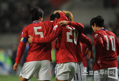 [스포츠투데이 정재훈 기자] 29일 오후 서울월드컵경기장에서 열린 2014 브라질 월드컵 아시아지역 3차 예선 최종전 한국과 쿠웨이트의 경기에서 이동국의 선제골에 동료들이 달려와 함께 기뻐하고 있다.스포츠투데이 정재훈 사진기자 roze@<ⓒ아시아경제 & 재밌는 뉴스, 즐거운 하루 "스포츠투데이(stoo.com)">