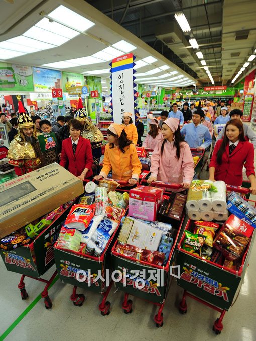 [아시아경제 윤동주 기자] 1일 서울 영등포구 문래동 홈플러스 영등포점에서 이순신 장군 복장을 한 모델들과 임직원들이 '임진년 물가 대첩' 퍼포먼스를 하고 있다. 홈플러스는 이날부터 1년간 400개 인기 생필품 가격을 연중 5~50% 인하하고, 다음 달 4일까지는 1000여 개의 주요 상품을 최대 50% 이상 할인 판매하는 '사상 최대 물가 잡기'를 전개한다.윤동주 기자 doso7@<ⓒ세계를 보는 창 경제를 보는 눈, 아시아경제(www.asiae.co.kr) 무단전재 배포금지>