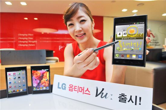 [아시아경제 권해영 기자]LG전자(대표 구본준)가 '옵티머스 뷰'를 출시하며 5인치대 스마트폰 시장에서 삼성전자의 '갤럭시 노트'와 본격적인 경쟁을 시작했다.LG전자는 5일 SK텔레콤과 LG유플러스를 통해 5인치 롱텀에볼루션(LTE) 스마트폰 '옵티머스 뷰(Vu:)'를 출시한다고 밝혔다.스페인 바르셀로나에서 열린 '모바일 월드 콩그레스(MWC) 2012'에서 처음 공개된 이 제품은 크고 시원한 대화면을 통해 보는 즐거움을 극대화했다. 5인치 IPS 디스플레이에 최적의 가독성을 제공하는 4대3 화면 비율을 적용했다. 파피루스, 일반 교과서, A4 용지 등도 이 화면비를 채택하고 있다.제품 상단에 퀵메모키를 탑재해 별도의 메모 애플리케이션 구동 없이 버튼 하나만 누르면 어떤 화면에서도 메모가 가능하다. 고무 재질로 만든 러버듐 펜과 일반 펜을 이용해 원하는 콘텐츠, 그림 등을 메모할 수 있다. 1.5기가헤르츠(GHz) 듀얼코어 프로세서, 안드로이드 2.3 '진저브레드' 운영체제(OS)를 탑재했다.LTE폰 가운데 가장 밝은 650니트 밝기의 IPS 디스플레이를 채택해 야외시인성이 높아져 태양빛 아래서도 또렷하고 정확한 색상의 화면을 즐길 수 있다. 두께 8.5mm, 무게 168g으로 휴대성도 높다. 출고가는 99만9900원이다.LG전자는 오는 8일부터 다음달 7일까지 옵티머스 뷰를 구매한 선착순 4만명을 대상으로 보조 배터리와 케이스를 증정한다.자세한 내용은 마이크로사이트(//www.lgoptimus.co.kr)나 LG 모바일 홈페이지 (//www.lgmobile.co.kr/lgmobile/front/event/eventList.dev)에서 확인할 수 있다. 박종석 LG전자 MC사업본부장은 "원터치로 생각을 바로 적어 공유할 수 있는 옵티머스 뷰는 생각을 발전시키는데 가장 좋은 스마트폰"이라며 "혁신적인 LTE 제품을 지속적으로 선보여 LTE 시장을 선도해 나갈 것"이라고 말했다.권해영 기자 roguehy@<ⓒ세계를 보는 창 경제를 보는 눈, 아시아경제(www.asiae.co.kr) 무단전재 배포금지>