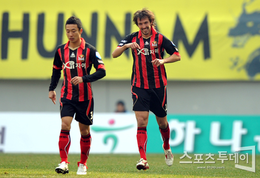 [스포츠투데이 정재훈 기자] 10일 오후 서울월드컵경기장에서 열린 '현대 오일뱅크 K리그 2012' FC서울과 전남 드래곤즈의 경기에서 선제골을 터뜨린 데얀이 활짝 웃고 있다.스포츠투데이 정재훈 사진기자 roze@<ⓒ아시아경제 & 재밌는 뉴스, 즐거운 하루 "스포츠투데이(stoo.com)">