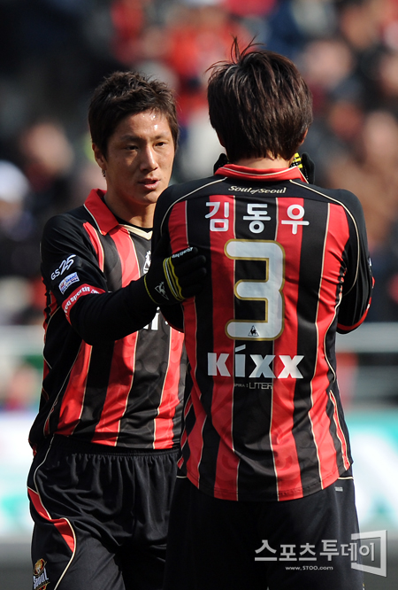 [스포츠투데이 정재훈 기자] 10일 오후 서울월드컵경기장에서 열린 '현대 오일뱅크 K리그 2012' FC서울과 전남 드래곤즈의 경기에서 김진규가 김동우와 대화를 나누고 있다.스포츠투데이 정재훈 사진기자 roze@<ⓒ아시아경제 & 재밌는 뉴스, 즐거운 하루 "스포츠투데이(stoo.com)">