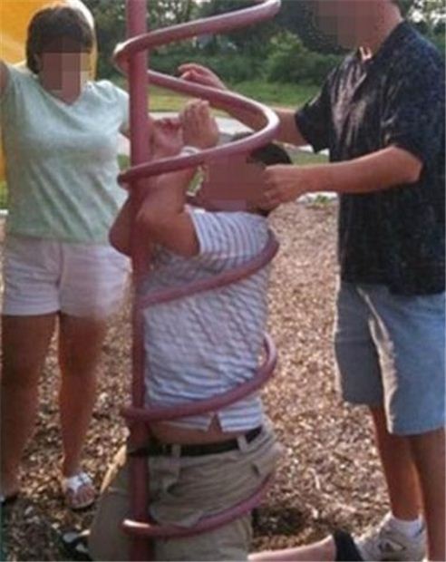 [아시아경제 박충훈 기자]불가능해 보이는 놀이터 사고 사진이 네티즌들의 눈길을 끌고 있다. 레딧, 나인개그닷컴 등 해외 커뮤니티에서 화제가 되고 있는 이 사진에는 성인 남성 한명이 놀이기구에 끼인 장면이 담겨 있다.체격이 건장한 이 남성은 나선형 기둥 모양의 놀이기구에 몸이 끼어 옴짝달싹 못하고 있다. 게다가 엉덩이 살집이 놀이기구를 비집고 튀어나와 있어 안타까움과 동시에 왠지 모를 웃음을 자아낸다. 주위의 동료들도 한심하다는 건지 큰일났다는 건지 알수 없는 애매한 표정을 짓고 있다.네티즌은 이 사진에 "어떻게 들어갔지? 대략난감" "어른들이 더 문제라니까" "들어가긴 쉬워도 나오긴 어려울텐데" 등의 반응을 보였다.박충훈 기자 parkjovi@<ⓒ세계를 보는 창 경제를 보는 눈, 아시아경제(www.asiae.co.kr) 무단전재 배포금지>