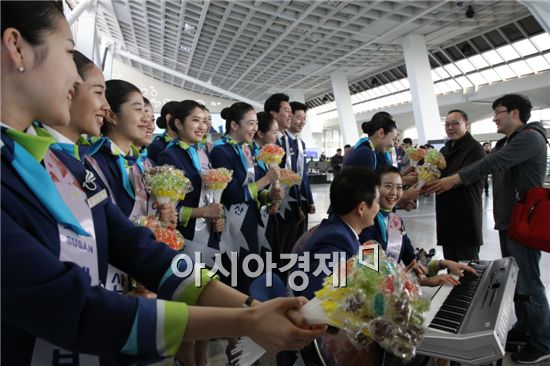 [아시아경제 조슬기나 기자]에어부산은 오는 14일 화이트데이를 앞두고 신입 캐빈승무원 20여명이 공항에서 깜짝 이벤트를 펼친다고 13일 밝혔다. 올초 입사한 신입 캐빈승무원들은 이날 오전에 김포공항, 오후에 김해공항에서 각각 피아노, 기타, 우쿨렐레를 연주하며 사랑을 소재로 한 노래를 부르고 사탕을 선물한다.에어부산 관계자는 “사랑을 고백하는 화이트데이를 맞아 고객들과 따뜻한 마음을 나누고 소통하고자 이 같은 행사를 마련했다. 이후에도 고객들과 행복을 나눌 수 있는 다양한 행사들을 펼칠 계획”이라고 전했다. 조슬기나 기자 seul@<ⓒ세계를 보는 창 경제를 보는 눈, 아시아경제(www.asiae.co.kr) 무단전재 배포금지>
