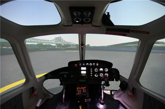 헬기 모의훈련비행장에 설치된 AS-350중형헬기용 시뮬레이터