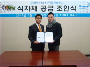 [아시아경제 이광호 기자]동원홈푸드는 15일 인기 개그맨 듀오 '컬투'가 운영하는 프랜차이즈 전문 기업 '컬투에프앤비'와 식자재 공급에 관한 업무 협약을 체결했다고 밝혔다. 동원홈푸드는 이번 업무협약을 통해 컬투에프앤비의 치킨 프랜차이즈, '컬투치킨' 전국 매장(42개)에 20억 상당의 식자재를 공급할 예정이다. 최근 치킨 업계에서 급부상하고 있는 '컬투치킨'은 올바른 먹거리라는 슬로건 아래 가족의 건강을 먼저 생각하는 프랜차이즈로 인기 개그맨 듀오 '컬투'의 후광 효과로 인해 향후 업계에서의 돌풍이 예상된다. 문종석 동원홈푸드 대표는 "이번 '컬투치킨'과의 업무 협약은 프랜차이즈 시장을 통한 식자재 서비스 사업을 확대하는 의미가 있다"며 "이를 통해 동원홈푸드는 향후 2015년 매출 1조원을 달성해 국내 최고의 식자재 서비스 기업으로 성장하는 목표를 달성할 것"이라고 말했다. 이광호 기자 kwang@<ⓒ세계를 보는 창 경제를 보는 눈, 아시아경제(www.asiae.co.kr) 무단전재 배포금지>