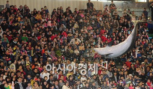 [아시아경제 윤동주 기자] 18일 서울동물원의 돌고래들이 마지막 쇼를 펼치고 있다. 서울시는 돌고래 쇼가 동물 학대라는 시민단체의 주장에 따라 연간 100만 명의 넘는 시민들과 아이들이 관람하는 돌고래 쇼를 19일부터 중단하기로 결정했다.윤동주 기자 doso7@<ⓒ세계를 보는 창 경제를 보는 눈, 아시아경제(www.asiae.co.kr) 무단전재 배포금지>