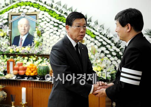 [아시아경제 양지웅 기자] 박삼구 금호아시아나그룹 회장이 19일 오후 서울 송파구 풍납동 현대아산병원 장례식장에 마련된 고(故) 김각중 경방그룹 명예회장의 빈소를 찾아 유가족을 위로하고 있다. 양지웅 기자 yangdoo@<ⓒ세계를 보는 창 경제를 보는 눈, 아시아경제(www.asiae.co.kr) 무단전재 배포금지>