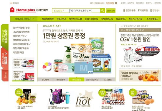 대신 기존의 스타일몰과 양대 축으로 구성했던 '프레시몰(fresh mall)'을 '온라인마트'라는 이름으로 바꿔 인터넷 쇼핑몰 홈페이지 전면에 내세웠다.홈플러스의 스타일몰은 식품관련된 제품을 제외한 '비식품 전문몰'로 지난해 4월 당시 온라인종합쇼핑몰로 사업을 확장시킨다는 목표아래 사이트를 전면 개편해 론칭했었다. 경쟁 대형마트가 운영하는 온라인쇼핑몰이 식품과 생필품 중심으로 진용이 이뤄진 것과 차별화를 꾀하겠다는 전략이었지만 채 1년을 버티지 못하고 수정한 셈이다.▲홈플러스 인터넷 쇼핑몰 홈페이지. 지난해 4월 스타일몰 론칭 당시. 스타일몰의 비중이 크게 차지하고 있다.