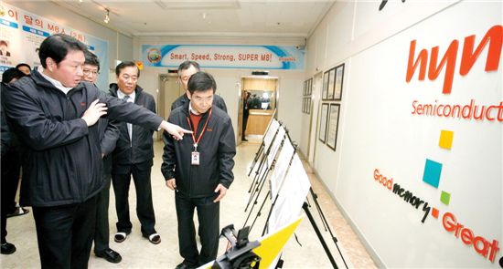 올해 2월 SK 최태원 회장이 하이닉스 청주공장을 둘러보고 있다.