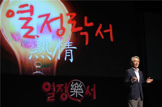 김낙회 제일기획 사장이 지난 22일 저녁 고려대 화정체육관에서 진행된 토크콘서트 열정樂서 시즌 2에서 대학생들을 대상으로 강연하고 있다.