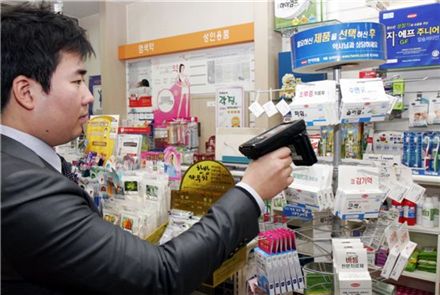 한미약품 영업사원이 약국을 방문해 RFID 리더기로 재고관리를 하고 있다. 제품 하나하나를 체크해야 하는 바코드와 달리 RFID는 주파수를 이용하기 때문에 일정 공간에 있는 제품을 동시에 인식할 수 있다. 리더기에는 재고수량, 유통기한, 유통이력 등이 표시된다.