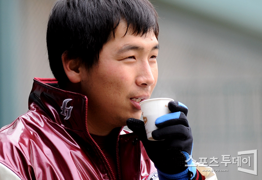 [스포츠투데이 정재훈 기자] 27일 오후 잠실야구장에서 두산 베어스와 넥센 히어로즈의 시범경기에 앞서 허도환이 커피를 마시며 경기를 준비하고 있다.스포츠투데이 정재훈 사진기자 roze@<ⓒ아시아경제 & 재밌는 뉴스, 즐거운 하루 "스포츠투데이(stoo.com)">