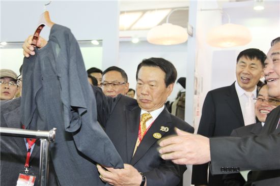 [아시아경제 오현길 기자]국내 패션기업 76개사가 참가하는 '프리뷰인차이나 2012'이 26일부터 29일까지 열린다.이번 전시회는 '유니크(Unique) 코리아'라는 주제로 열리며 작년 참가업체의 재참가와 더불어 국내 내셔널브랜드, 기성 디자이너브랜드의 신규 참가가 두드러진다.작년 프리뷰 인 차이나’에서 좋은 성과를 낸 ‘졸리앤딘(Jolie&Deen)’, ‘르퀸(Le Queen)’, ‘엣뮤(At-Mue)’ 등과 세인물산의 ‘디체(DICHE)', 프리앤메지스의 메지스(MEZIS)', 신진디자이너 브랜드 ’디자인 바이 재우킴(Designed By Jaewoo Kim)‘ 등은 고감도 캐릭터 정장으로 커리어우먼을 공략한다.뿐만 아니라 이새에프앤씨의 ‘이새’를 비롯해 ‘소통’, ‘김혜주자연옷’, ‘물드린’, ‘예솜’ 등의 친환경 패션 브랜드도 참가한다. 김철웅 모드의 ‘김철웅 모드’, 트랜스모드의 ‘신장경’, 강기옥 부띠끄의 ‘키옥’ 등 기성 디자이너브랜드들도 중국 고급시장에 진출한다.아울러 국내 온라인 남성복 브랜드 1~2위를 다투는 ‘마인엠옴므’, 이미 중국에서 7년차 영업 중인 온돌레더패션의 유로피안 감성의 남성복 ‘바래엔(Balae n)'은 품질과 가격 경쟁력을 내세워 중국 남성복 시장 확대에 나선다.삼양모피, 상아패션, 인산엘에프엘, 금안통상, 주코줄리 등 세계적인 기술력을 자랑하는 모피 및 가죽 의류 생산업체들은 최고급 모피 아이템부터 보다 젊어진 디자인을 내세운 트렌드 제품까지 다양한 신상품을 공개할 예정이다.오는 가을 파리 유명 편집숍에 진출하는 ‘아벡에스(AvecS)'를 비롯해 파코인터내셔날의 ‘브릿지일레븐(Bridge11)’, 투에스티인터내셔날의 ‘더홀리크’, 앤컴퍼니의 ‘필로소피’ 등 여성 영캐주얼 브랜드의 참가가 크게 증가했다.이들은 한국 패션기업 특유의 아이디어와 손맛으로 한국 문화의 글로벌 경쟁력을 제시한다는 계획으로 특히 현대 도시인들의 라이프스타일을 한국적 감성으로 풀어낸 오피스룩부터 파티 웨어, 레저 스포츠룩, 친환경 및 스트리트 패션까지 다양하게 선보일 예정이다. 이외에도 ’프리뷰 인 차이나‘를 통해 중국에 첫발을 내딛는 브랜드인덱스의 스트리트캐주얼 ‘팬콧’과 스노우스포츠 아이템을 선보이는 도리컴퍼니의 ‘토스’, 26스토리가 런칭하는 기능성 스포츠웨어 ‘피에스 배터미(P.S. Better me)’ 등 한국의 스트리트 패션을 중국에 소개한다.김동수 한국섬유산업연합회 부회장은 "한국만의 독특한 감성과 글로벌 감각을 두루 갖춘 참가업체가 어느 때보다 많다"며 "드라마나 케이팝처럼 아시아에서 전 세계로 번져나갈 패션 한류의 탄생을 기대해 봐도 좋다"고 말했다. 한편 한국섬유산업연합회는 2010년부터 중국내 다양한 유통망 확대와 북방지역을 포함한 중국 전역으로의 브랜드 진출에 대한 섬유업계의 요구가 높아짐에 따라 북경에서 ’프리뷰 인 차이나‘를 개최하여 국내 패션 브랜드 업체들의 중국 진출 마케팅 활동을 지원하고 있다.노희찬 한국섬유산업연합회 회장이 26일 열린 프리뷰인차이나에서 제품을 살펴보고 있다.