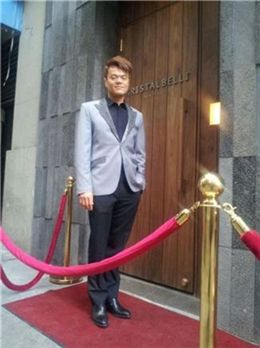 ▲ 지난 26일 뉴욕 맨해튼 크리스탈밸리 앞에 선 박진영 씨(출처: 박진영 트위터)